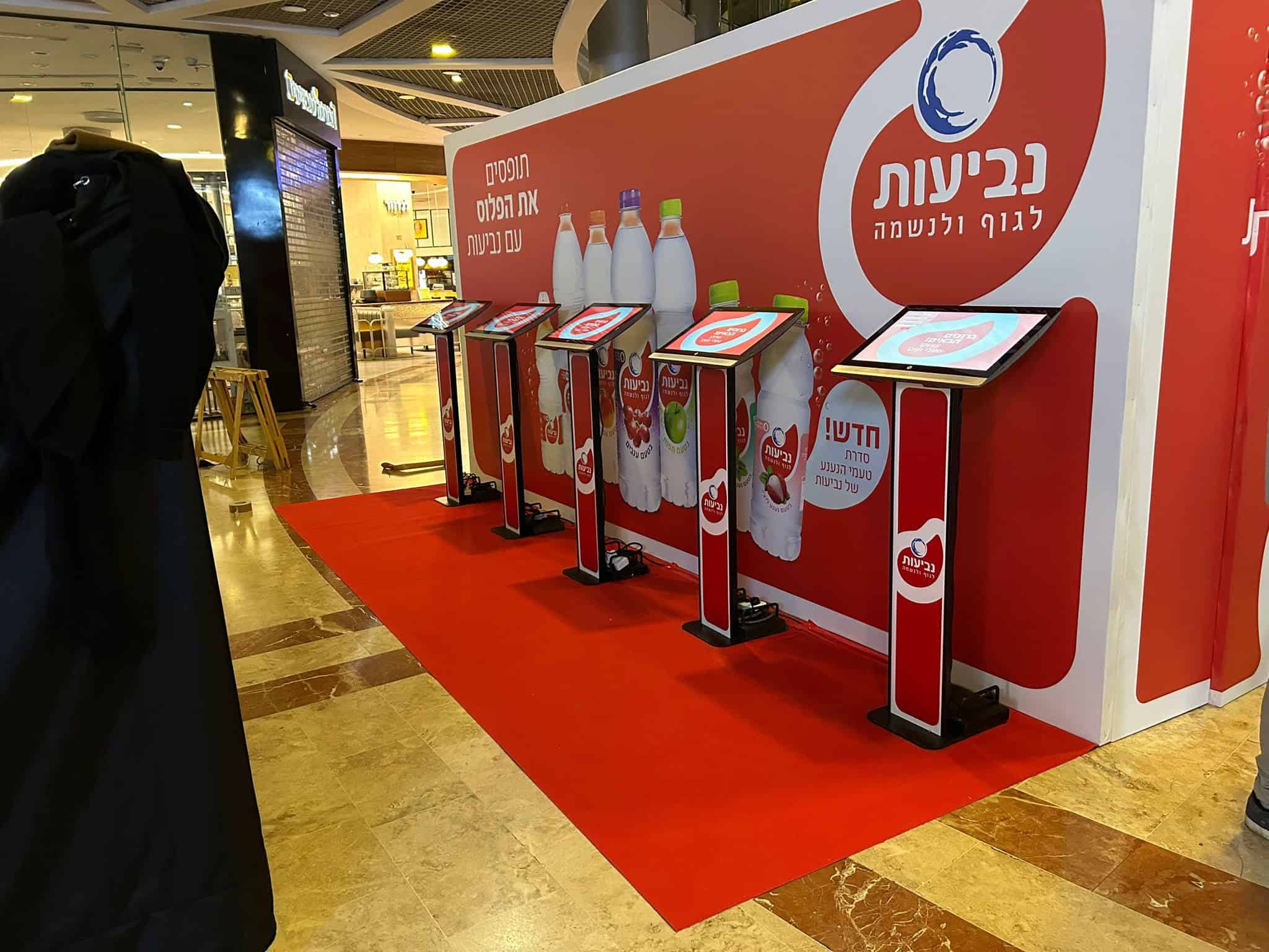 מסכים אינטראקטיביים ועמדות קיוסק מסכים אינטראקטיביים לעמדות קבע ופעילויות קד"ם מסכים אינטראקטיביים חכמים פועלים בעזרת תקשורת ישירה עם הצופה דרך המסך באמצעות מצלמות תנועה מיוחדות המאפשרות למסך עצמו להיות "חכם" ולהבין תנועה שזזה מולו או באמצעות מגע ישיר על גבי המסך המתרגם את מגע האצבעות לפעולות ממשיות בתוכן המוצג בו. קיימות כיום כמה טכנולוגיות מובילות וחדשניות להקמת מערכות שמבוססות על מסכים אינטראקטיביים בשוק כאשר הטכנולוגיה המובילה והמוכרת לכל כמובן מושתת בטלפונים החכמים שלנו או בטאבלטים – שזה מגיע למסכים יותר גדולים הטכנולוגיה משתנה מעט אך הרעיון נשאר זהה. על מנת לייצר אינטראקציה נכונה, יעילה ועובדת חשוב לייצר תוכן נכון מתאים מבחינה שיווקית ולדעת להתחשב גם בתנאי הסביבה כמו התאורה, גודל המסך, תלייה נכונה של המסך ועוד כמה גורמים. עמדות קיוסק להשכרה ולהתקנות קבע עמדת קיוסק הוא מושג רחב המתייחס לעמדת מסך אינטראקטיבית בה קיימת מערכת בסיסית של מסך מגע עם מחשב עם תוכנה מתאימה לאופי העמדה. אחרי הבסיס הזה ניתן להוסיף לפי הצורך מדפסת, סורק ברקוד וסולק אשראי. חברתנו מבצעת התקנות קבע ופרויקטים נרחבים בתחום הקד"ם והאירועים העסקיים המרכזים בארץ. באמתחתנו היצע רחב ועשיר של מסכי מגע בכל הגדלים, מצלמות תנועה חכמות ומתקני תצוגה ייעודים וגם מתקנים בבנייה והתאמה אישית. כמו כן, חברתנו מתמחה בבניית של ממשק ייעודי לעמדות קיוסק לטובת רישום, מכירות, איסוף נתונים ועוד. משלב הרעיון לשלב הפתרון! דרך הקמה ובנייה של ממשק תוכן מתאים בהתאם למטרת העמדה ואספקת החומרה המתאימה ביותר לצורך שלך. כמה דוגמאות לשימוש בעמדות קיוסק להשכרה ועמדות קיוסק להצבה בחנויות: עמדות מכירה עצמאיות – דוגמת העמדות הקיימות בסניפי מק'דונלדס. עמדות רישום עצמאיות – מתאים במיוחד לאירועי ספורט ולכנסים בהם המשתתפים רושמים נוכחות בעצמם ללא התערבות דייל/ת. עמדות מידע אינטראקטיביות – מתאים לתערוכות בהם המציג מבקש להציג את דף האינטרנט של העסק שלו בצורה מונגשת לבאי הביתן. עמדות הגרלה ממוחשבות לקידום מכירות הרשת ואיסוף מיילים לדיוור – מעולה לפעילות קד"ם רשתית להצבה בקניונים ובחנויות הרשת. השכרת מסכי מגע בכל הגדלים עם בנייה של מתקן ייעודי בהתאמה אישית – ניתן לייצר שולחנות מגע, קירות מגע ועוד… עם ניסיון רב בעולם המסכים והוידאו בכלל עם דגש מיוחד וחיבה בלתי מוסברת למסכים אינטראקטיביים בפרט, נשמח לעזור ולתת שירות וייעוץ גם ללא עלות! משלב הרעיון, דרך שלב התכנון הקפדני ועד לשלב הביצוע בשטח. חברתנו מתמחה במתן פתרונות ייעודים וייעוץ לפרויקטים מיוחדים ומגניבים המשלבים עוצמה דיגיטלית לרעיונות פשטניים ומורכבים כאחד. לפניכם גלריית תמונות עם מספר לא מבוטל של עמדות קיוסק מאירועי קד"מ, כנסים ותערכות. כל המסכים שבתמונות הם מסכי מגע אינטראקטיביים.